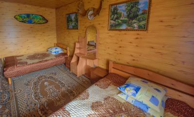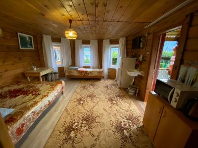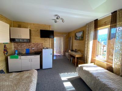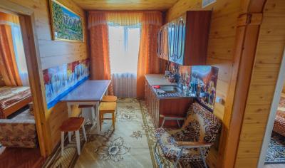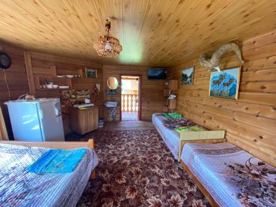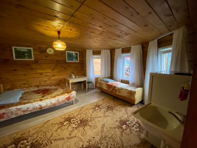 - 4-хместный номер на 2-ом этаже — 5000 руб./сутки. Санузел (туалет, душ) в номере, 2 двуспальные кровати, место для приготовления еды, телевизор, холодильник, посуда.
