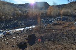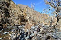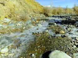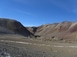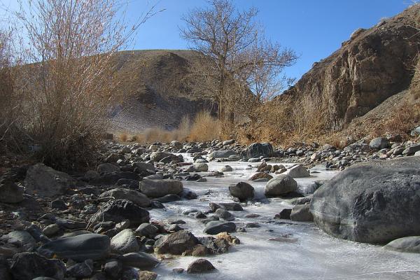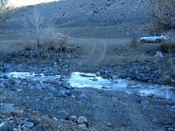 У речки Кызыл-Чин есть очень интересная особенность: ее "выключают" на ночь! Пока нет солнца перестают таять снежники, которые питают реку, и вода перестают течь. Днем при сильном солнце вода опять появляется в русле. Так что если вы ранним утром прошли по сухому броду к Марсу-1, будьте готовы, что на обратном пути вам надо будет скакать по камушкам, русло будет заполнено!