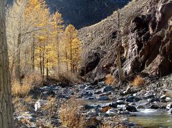 Речка течет между рядами тополей, которые сопровождают ее по обоим берегам. Получается очень уютная тополиная аллея! Речка мелкая. Летом отдельные ванночки хорошо прогреваются и в них замечательно полежать усталому путнику!