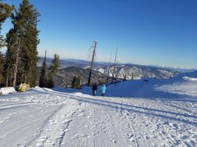 "Фан" (синяя - средней сложности) с вершины до нижней станции подъемника: длина 4000 м, перепад высот - 755 м. Обслуживается кресельным подъемником. Для новичков не очень подходит, т.к. резкие перепады между сложными и простыми участками.
