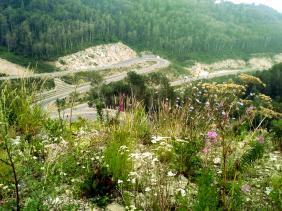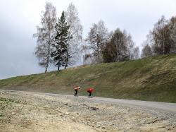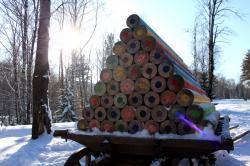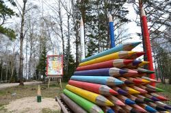 Налево от площадки идет дорога к арт-объекту "Поляна художников" с гигантскими карандашами и к "Альпийской деревне".