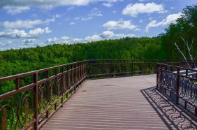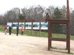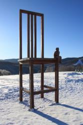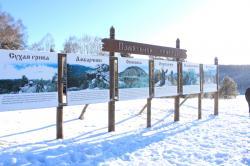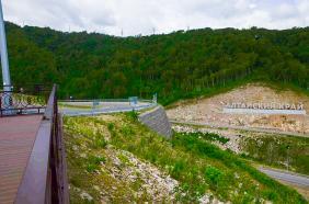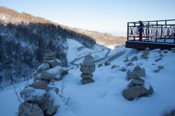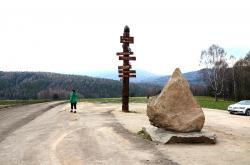 Наверху туристы увидят большую обзорную площадку с деревянной скульптурой "Мыслитель" Владимира Войчишина, указатель на природные достопримечательности, а также на площадке есть плакаты со схемами нового кластера Белокуриха-2.