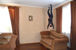 В Перевертыше есть все, как в обычном коттедже: на первом этаже гостиная, кухня, ванная с туалетом. Только первый этаж находится для нас наверху, туда надо подняться или "спуститься" по лестнице. Обход начинается со второго этажа, а для нас "первого" - с детской и спальни.