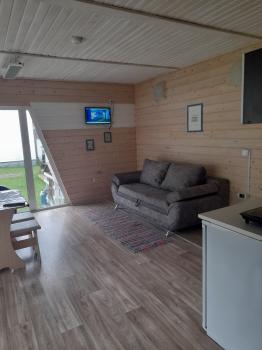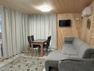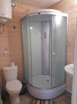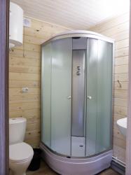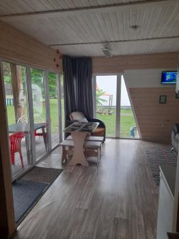 2 ДОМА-БЛИЗНЕЦА (и снаружи, и внутри) (в каждом 2 осн.+ 2 доп ) Панорамные окна на две стороны! На террасах подвесные кресла-гамаки. Отопление: безопасные инфракрасные обогреватели с терморегулятором . КОНДИЦИОНЕР !!!!! В доме современный интерьер: кровать ш.160 см, диван-кровать (или два кресла-кровати), ТВ с возможностью подключать цифровые носители, WI-FI, шкаф для одежды, комод, обеденная группа (ее можно выносить на террасу). Кухня полностью оборудована (холодильник, электрочайник, индукционная плитка, СВЧ, мультиварка ), набор посуды на 4-х человек (тарелки, бокалы, рюмки, столовые приборы), кастрюля, сковородка, миски-матрешки, салатники, консервный нож,штопор, поварешка, ножи, разделочная доска. Санузел: душевая кабина, раковина, WC, фен, жидкое мыло, комплект полотенец на каждого проживающего и полотенце для ног.