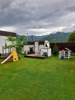 Два дома-студии, уютные условия проживания, красивый ландшафт усадьбы,интересные места поблизости: Рублевка с искусственным озером и аттракционами, о.Патмос, музей Палеопарк, Зубы Дракона, Чемальская ГЭС, Аквапарк на Турсибе. От усадьбы до реки Катунь по дороге 300 метров.
