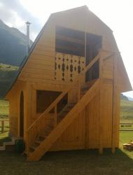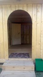 - 5-местный аил с печкой. Деревянный домик: пять 1-спальных кроватей, столик, стульчики, эл. розетки, постельные принадлежности.