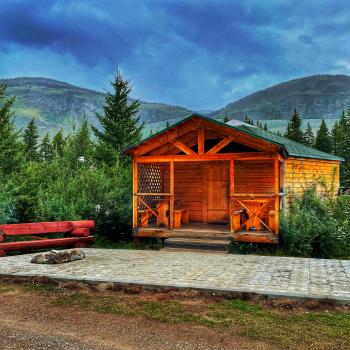 | 4-хместный благоустроенный аил-хан (А3). Душ, унитаз, раковина, обогреватели, чайник, двуспал ьная кровать на втором ярусе, две односпальные кровати, стол, четыре стула, постельное белье. Необычный домик в форме национального алтайского жилища (чадыр) в современном стиле и современным комфортом по индивидуальному проекту турбазы «Зеленый Колобок». |