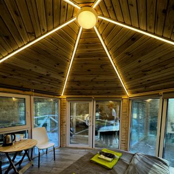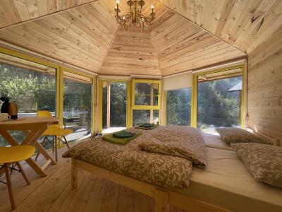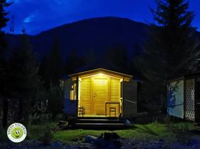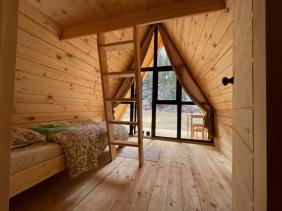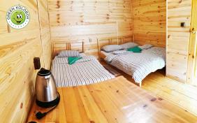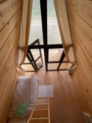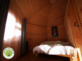 | 3-х местные благоустроенные домики с панорамным окном в лес. А-фрейм улучшенный. (ТУ1, ТУ2, ТУ3, ТУ4) Душ, унитаз, раковина, кондиционер, электрочайник, одна кровать двухместная на втором ярусе, одна кровать одноместная на полу, обогреватель, постельное белье. На веранде стол и табуретки. Экологичные домики полностью из натурального необработанного дерева в стиле советских палаток по индивидуальному проекту Зелёного колобка, таких домиков больше нигде нет.;) |