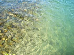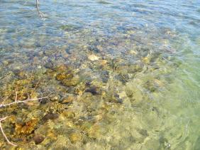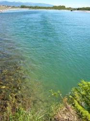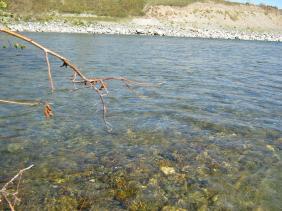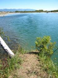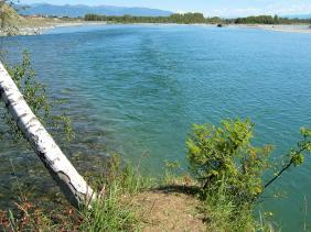 Перейдя по мосту реку Кокса, вы увидите тропинку по берегу среди берез. Вы доходите до протоки Коксы, в сухое время ее свободно можно перейти. Дальше двигаетесь, или держась берега Катуни или берега Коксы, которые в этом месте текут уже очень рядом. С острого мыса видно, как встречаются воды двух рек, двух разных цветов бирюзовая Катунь и прозрачная Кокса. Кокса в этом месте неглубокая, так что видно камушки на дне, русло Катуни, наоборот, глубокое.