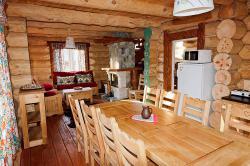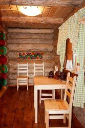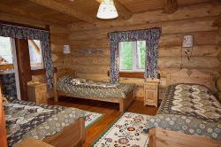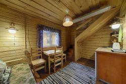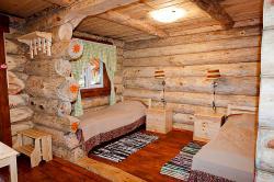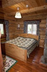В каждой избушке для гостей - две кровати, которые легко составляются в одну двухспальную. Удобный обеденный стол со стульями, прикроватные тумбочки, тумба для обуви и вешала для одежды, а также необходимый набор посуды. В каждый домик, мы можем поставить два дополнительных места. 6 избушек имеют WC, для 5 избушек удобства с душем расположены в современном, теплом, удобном помещении (евростандарт) в 20-50 м от избушки. | 2700 руб/номер без удобств, 3000 руб/номер с WC |