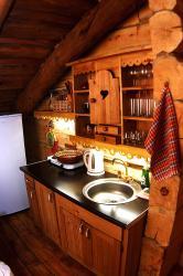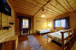 В каждой избушке для гостей - две двухъярусных кровати. Удобный обеденный стол со стульями, прикроватные тумбочки, тумба для обуви и вешала для одежды, а также необходимый набор посуды. В каждый домик, мы можем поставить два дополнительных места. 5 избушек имеют WC, в одной избушке есть WC и душ. | 4400 руб/номер без удобств 4800 руб/номер c WC, 5000 руб/номер с WC, душем |