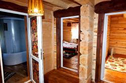 «Боярский» терем | Боярский дом включает в себя 2 номера категории люкс. Номера располагаются в деревянном коттедже с отдельными входами. Пространство номера разделено поэтажно на две зоны: спальню и гостевую. На первом этаже расположена гостиная с кухонный зоной и санузлом. Гостиная меблирована уютной мягкой мебелью, эргономичной кухонной зоной, плазменным телевизором со спутниковой антенной. На втором - уютная спальня меблирована двумя деревянными кроватями, которые можно составить в 1 двух спальную кровать и элегантными аксессуарами в славянской стилистике. Каждый двухэтажный номер имеет свою веранду и балкон. При желании в каждый номер можно добавить до три дополнительных мест. Приятное убранство номера поможет уйти от суеты и окунуться в мир тишины и покоя | 4300 руб/номер |