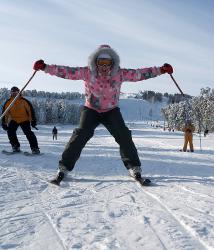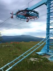 Подъемник работает: пятница-воскресенье 8:00-17:00, в будние дни по запросу, при наличии больше 5 человек. Стоимость одного подъема 100 руб. На базе работает пункт проката горнолыжного снаряжения.
