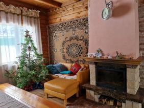 Дом c камином из кедрового бруса полностью благоустроен. Бесплатный Wi-Fi.