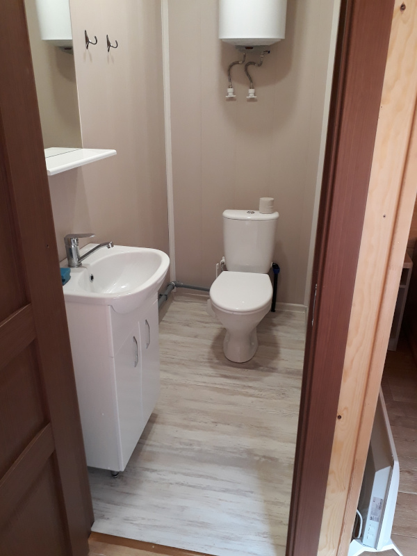 - 4-хместный отдельный теплый домик из бруса с санузлом (душ, туалет)