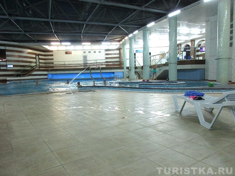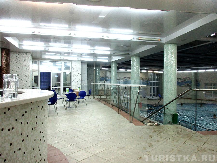 После душа вы проходите к фито-бару и большому бассейну. В бассейне несколько зон глубины, есть гидро-массажные зоны. По середине бассейна – зона гейзеров, которые постоянно меняют положение. Доплывая до гейзера вы противостоите течению – это неплохая тренировка. На самом гейзере можно поблаженствовать в бурлящей воде, пока гейзер не исчезнет и не появится в другом месте.
