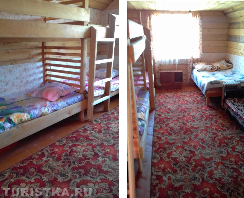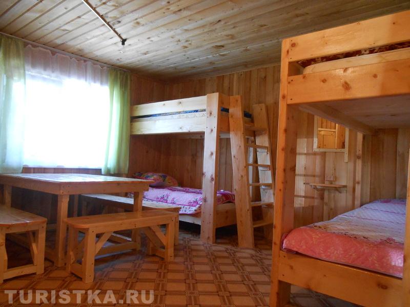№2. Отдельный домик на 5 чел.: односпальная кровать, двухъярусная кровать с двухспальными кроватями, холодильник, эл. чайник. Душ, туалет на территории.