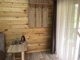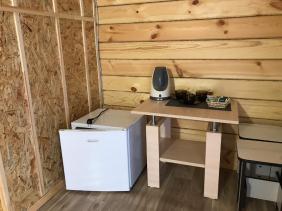 В номере: двуспальная кровать (ширина 140 см) с тумбочками, холодильник, обогреватель, чайник, набор чайной посуды, Wi-Fi (не стабильный), столик, табуреты, вешалка.