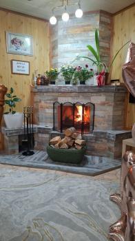 - Каминный зал (большой диван и кресло-кровать, 3 места). Камин топится берёзовыми дровами.