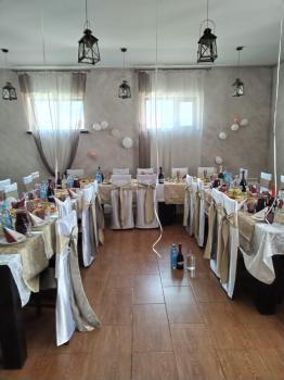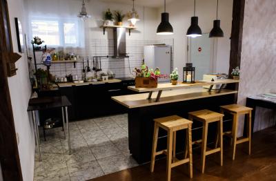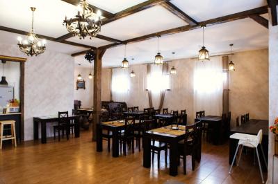 Кухня на 1 этаже оборудована всем необходимым для самостоятельного приготовления и заказного меню. СВЧ-печь, плита, холодильник, Wi-Fi. Площадь столовой 100 м2.