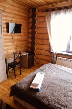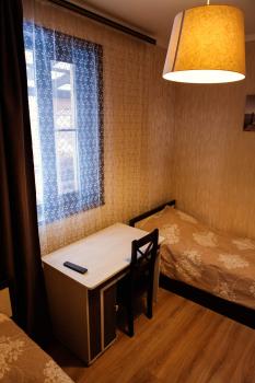 - Номер 3. 1 двухспальная кровать, 1 односпальная кровать, ТВ, холодильник, стул, шкаф, тумба, душевая кабина, раковина, унитаз, фен, вид в сад. Цена 3800 р. для троих, с июня по август - 4200 р. номер в сутки.