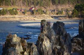 В 2014 г. деревянный мост, который тоже опирался на "зуб дракона" сломало и снесло сильным паводком.