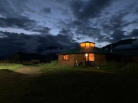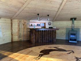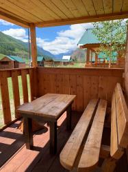 Гостевой Аил: 8-угольное круглое строение, представляющее с виду традиционное жилище алтайцев выполненное в современном стиле площадью 80 кв. м. основного зала под куполом. Для приема гостей, банкета и проведений развлекательных мероприятий.