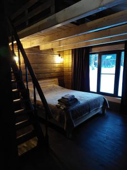 - 1 этаж: 1 номер с двуспальной кроватью, санузел и душевая кабина на втором этаже.