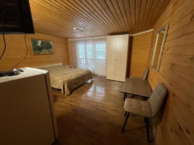 - 2 этаж: 9 номер с двухспальной кроватью и односпальная кровать с телевизором и холодильник, с балконом. Санузел и душевая кабина на этаже.
