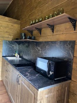 Дом номер № 3. Большой дом разделён на две части, в каждой части кухня, санузел, двухместная кровать и 2 доп места на мансардном этаже.