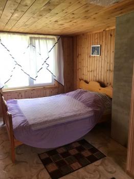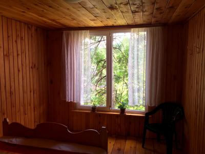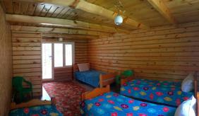 Первый этаж 4-хместный номер -- туалет, раковина, 1 двуспальная кровать, 2 односпальные кровати, столик. Зимой печное отопление.