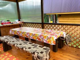 - Питание - самостоятельное. В крытой беседке-кухне подведена вода, есть плита, чайник, посуда, столики.