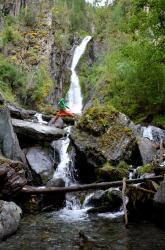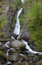 Как добраться: Двигаясь в сторону Акташа, на 781 км. Чуйского тракта, не доезжая 5-6 км до села Чибит повернуть направо, переехать деревянный мост через реку Чуя. По левому берегу реки проехать вниз по течению около 2-3 км. По табличке "водопад 1" сворачиваем налево. Дорога уходит к лесу и подножью горы. Оставляем машину на поляне, еще немного пройдем пешком, и серебряная нить водопада становится видна. Посмотрев водопад, не спешите уезжать, немного дальше находится Большой Уларский водопад, безусловно заслуживающий вашего внимания.