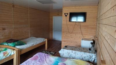 - Четырехместный номер 5000 р. номер. В номере 1 двуспальная кровать + 2 односпальные кровати, стол, холодильник, телевизор, эл. чайник, Wi-Fi, центральное отопление. Санузел в номере: душ, туалет, раковина.