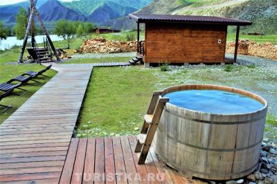 Вас ждут горячая баня, беседка, купель, максимальный релакс в сибирском чане, сенный домик. Всё это на берегу Катуни в окружении удивительной природы. Мощный заряд энергии и эмоциональный подъем.