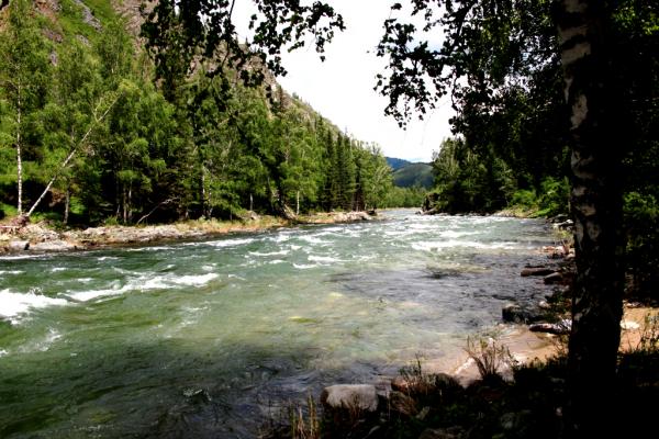 Где-то между верхним и средним течением Кумира находится красивый и сложный порог, за которым бурлящая, норовистая река внезапно превращается в безупречно гладкое зеркало, в которое глядятся прибрежные скалы и спускающиеся к самой воде березы. И порог, и этот участок спокойной, до самого дна прозрачной воды, носят одинаковое название «Девичьи плёсы».