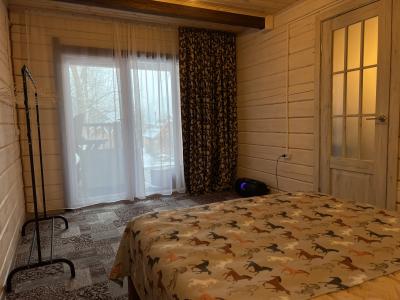 Панорамные окна, вход с улицы, двуспальная и односпальная кровати, тумбочка, журнальный столик, вешалки для вещей,