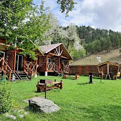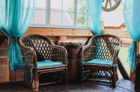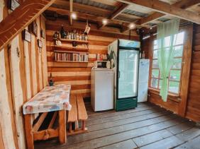 - Трёхместный отдельный домик "Комфорт". В домике двуспальная и односпальная кровати, холодильник, чайник, ТВ, журнальный столик. Туалет, раковина и душ с горячей водой. На веранде стол и скамейки.