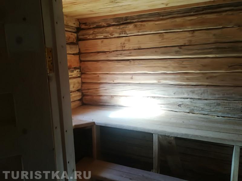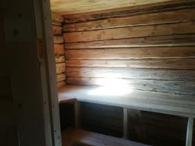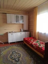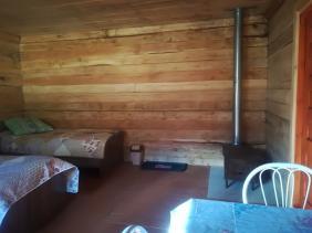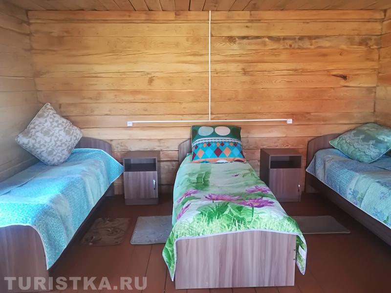 Три односпальные кровати, постельное белье, тумбочки для хранения личных вещей, электричество, отопление (печь), посуда, чайник, стол обеденный, стулья.