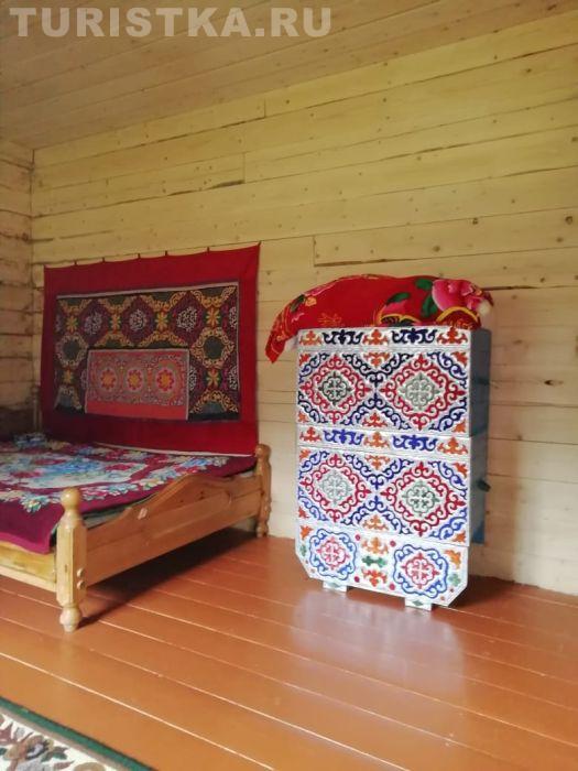 К услугам гостей комфортные домики, дом для отдыха и рыбалки, теплый аил на 8 мест, баня, беседка-столовая. А также организация походов, конных, пеших, автомобильных экскурсий и рыбалки.