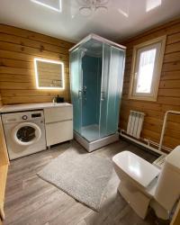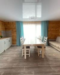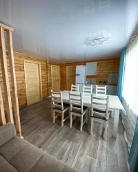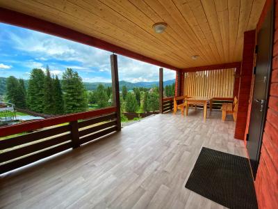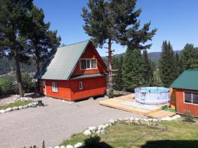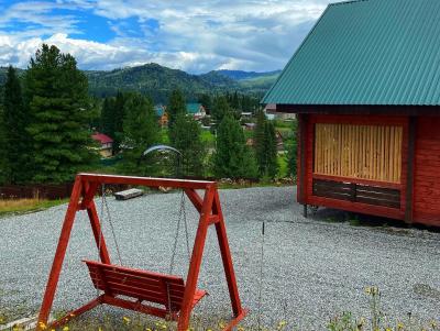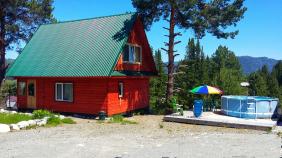 - Первый этаж дома: две комнаты, в каждой комнате двуспальная кровать, тумбочка. Кухня (холодильник, плитка, чайник, микроволновка, посуда). Ванная комната: душ, туалет, раковина. Также на 1 этаже находится большая, уютная терраса с видом на Телецкое озеро, с большим столом и лавочками.