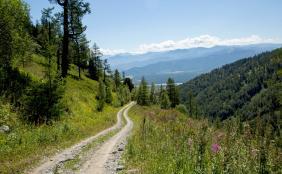 Начало пути с села Баштала, держим курс на Теректинский хребет. Дорога ныряет в брод через речку Баштала. Далее вас ждёт подъем по серпантину. Дорога узкая из скальных камней и булыжников. На поворотах уазики не с первго раза вписываются. Держимся всегда правее, налево уходят дороги на пастбища и коровники. Далее дорога превращается в грунтовку с вымоинами и кедровыми корнями. Придется потрястись. Подъем до первой площадки по времени занимает минут 40. Сквозь кедровые леса по правую руку вы выезжаете на первую смотровую площадку на "Уймонскую долину" и Белуху.