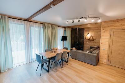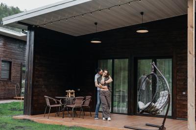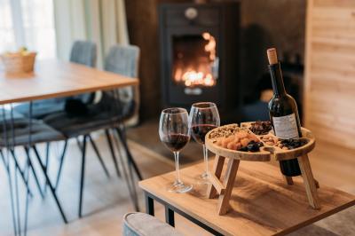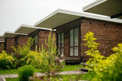 Просторный дом с панорамными окнами, камином, кухня оснащенная техникой(холодильник,чайник, кофемашина, плита, микроволновая печь, посуда, бокалы) Дом с теплым полом, с индивидуальной террассой для отдыха и мангальной зоной. Сан.узел с душем со всеми гигиеническими принадлежностями, махровыми полотенцами и халатами на каждого проживающего.