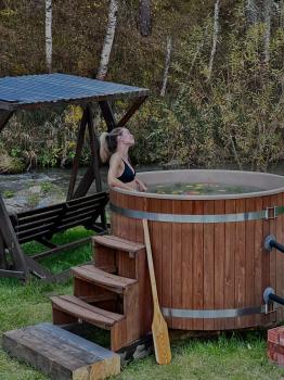 Также мы рады предложить гостям подогреваемый чан. При бронировании на 2 часа стоимость 5000 рублей.