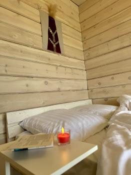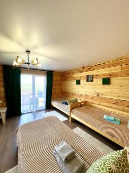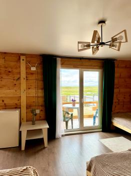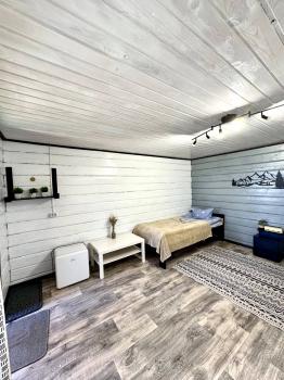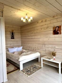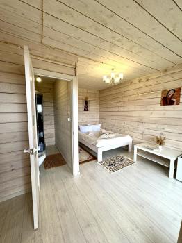 Новый 3х-местный домик со всеми удобствами:1 двуспальная кровать и 1 полутораспальная кровать, панорамные окна, раскладной столик.