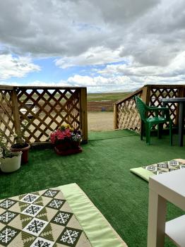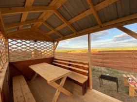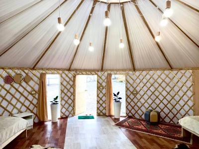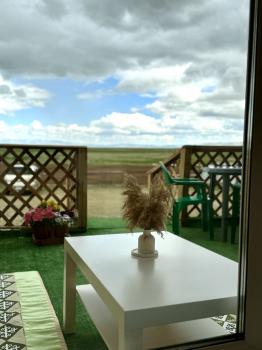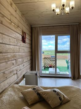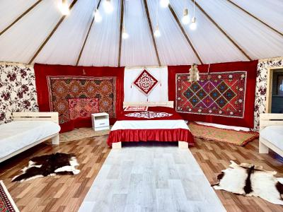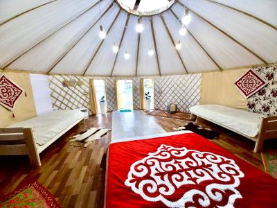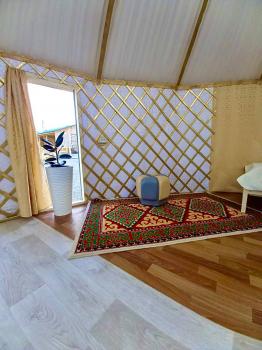 Новая казахская юрта, в которой сочетаются современный интерьер и традиционные элементы, хранящие в себе обычаи и традиции казахского народа. В юрте имеются панорамные окна с красивым видом.