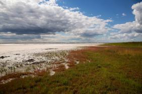 Вся почва вокруг озера пропитана солью и имеет характерный белый цвет. Дно Бурлинского озера покрыто чистыми кристаллами соли: чтобы не пораниться, ходить по дну рекомендуется в обуви. Чем глубже погружаешься, тем крупнее кристаллы соли.