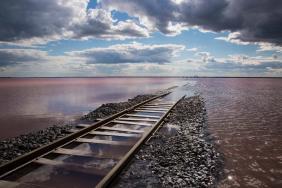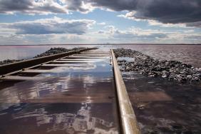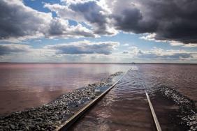 А еще, это отличное место для фотографий! Железная дорога, по которой курсирует обоз, груженный солью, заходит прямо на середину озера.
