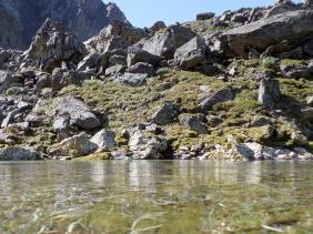 Вдоль озерца вверх идет тропинка к Нижнешавлинскому перевалу, а если посмотреть налево, то там увидите Пирамиду. Протоптанной тропы на Пирамиду нет, поэтому выбирайте, где вам кажется лучше подниматься.