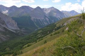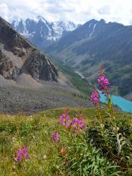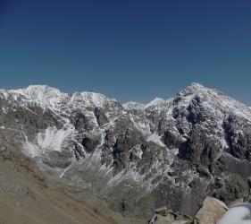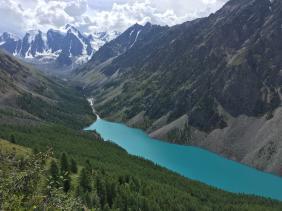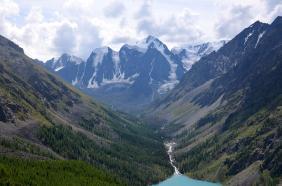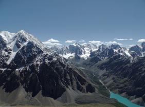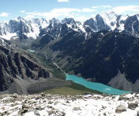 С вершины Пирамиды отличный обзор можно далеко-далеко увидеть Белуху, видно долину реки Левая Шавла, Левое Шавлинское озеро, Нижне-Шавлинский перевал.